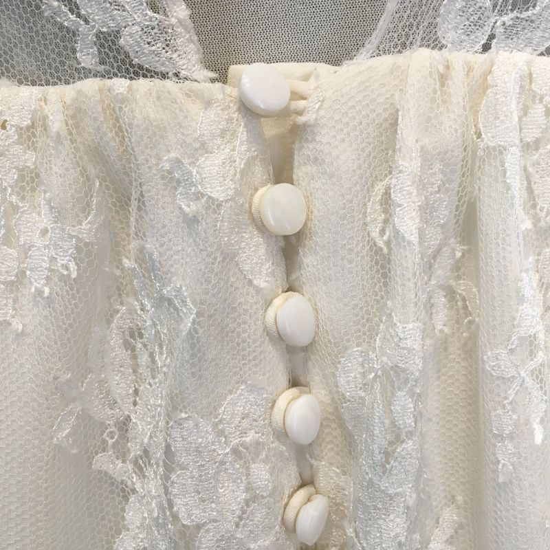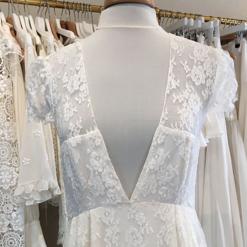 Haut : décolleté V sur la poitrine et dans le dos - tout en dentelle de calais - décolleté dos et fermeture boutons en bas du dos