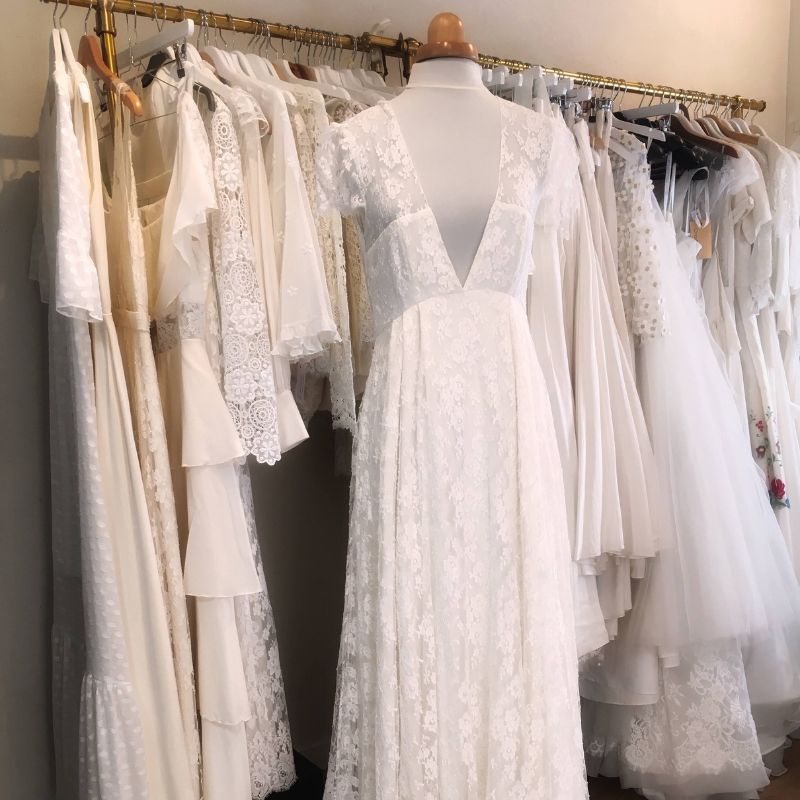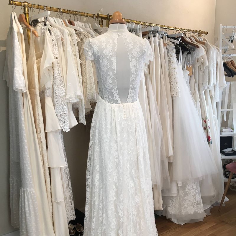 Les robes d’Elise Hameau sont créées dans les plus beaux tissus fabriqués en France : dentelles de Calais et de Caudry, satin, mousselines et soies légères lyonnaises, crêpe georgette, organza, plumetis de soie. Les robes ont été conçues à la main dans l’atelier Parisien de la créatrice.