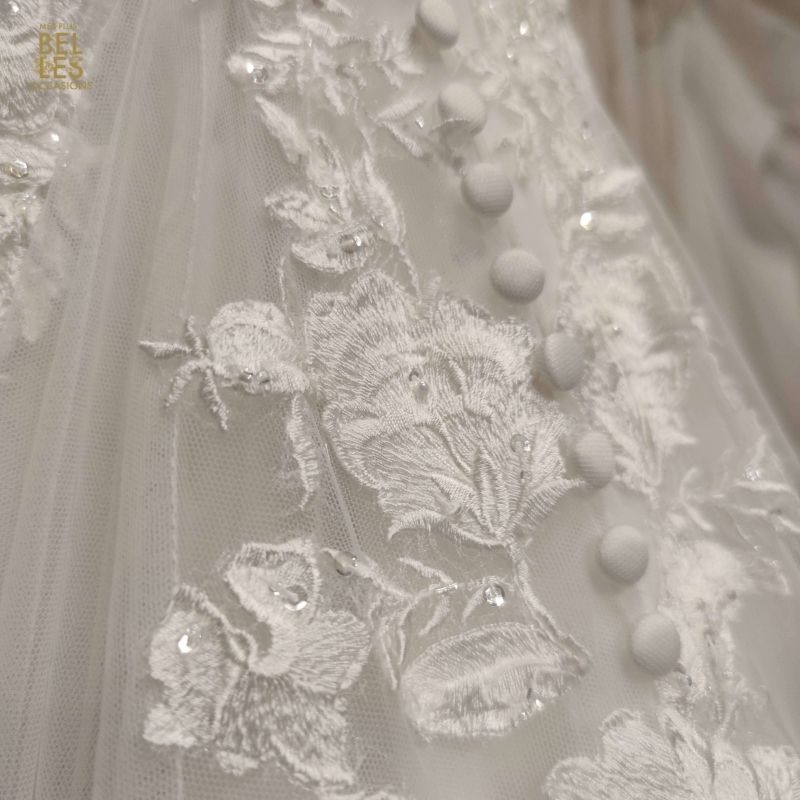 Taille : 36 (ajustable +/-) – Poitrine : 85D (peut être ajusté à votre taille)- la mariée devra mesurer 1,66m maximum (avec talons)